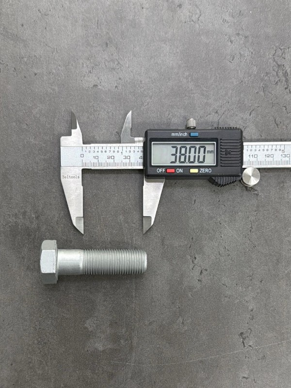 Болт с шестигранной головкой, высокопрочный, мелкий шагом резьбы. Стандарт: таблица FIAT-ВАЗ 10312. Диаметр резьбы: 12 мм. Шаг резьбы: 1,25 (мелкий). Длина болта: 25 мм. Длина резьбы: 25 мм. Размер "под ключ": 19 мм. Класс прочности: 10.9. Покрытие: цинк-ламель. В соответствии со стандартами, длина болта измеряется от опорной части головки до конца фаски, которой завершается его резьбовой стержень.