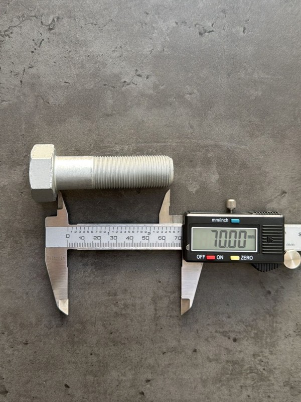 Болт с шестигранной головкой, высокопрочный, мелкий шаг резьбы. Болт российского производства. Стандарт : Din 960. Можно использовать, как альтернативу ГОСТ 7798-70 . Длина болта: 70 мм. Длина резьбы: 46. Диаметр резьбы: 20 мм. Шаг резьбы: 1,5. Размер "под ключ": 30 мм. Класс прочности: 10.9. Покрытие: цинк-ламель. В соответствии со стандартами, длина болта измеряется от опорной части головки до конца фаски, которой завершается его резьбовой стержень.